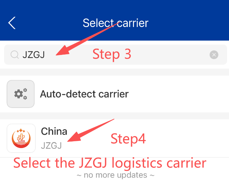 2.Select the logistics carrier, and enter "JZGJ" (for the carrier selection).