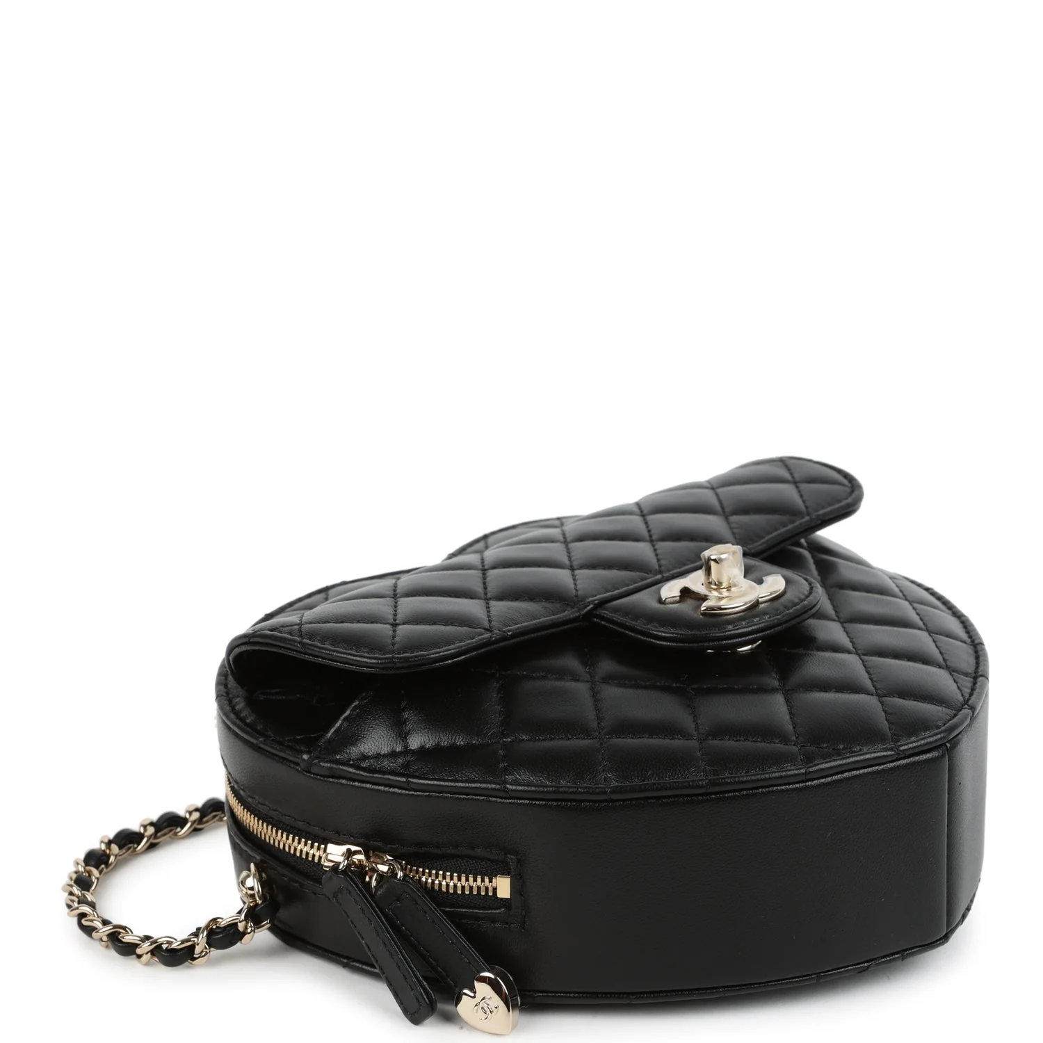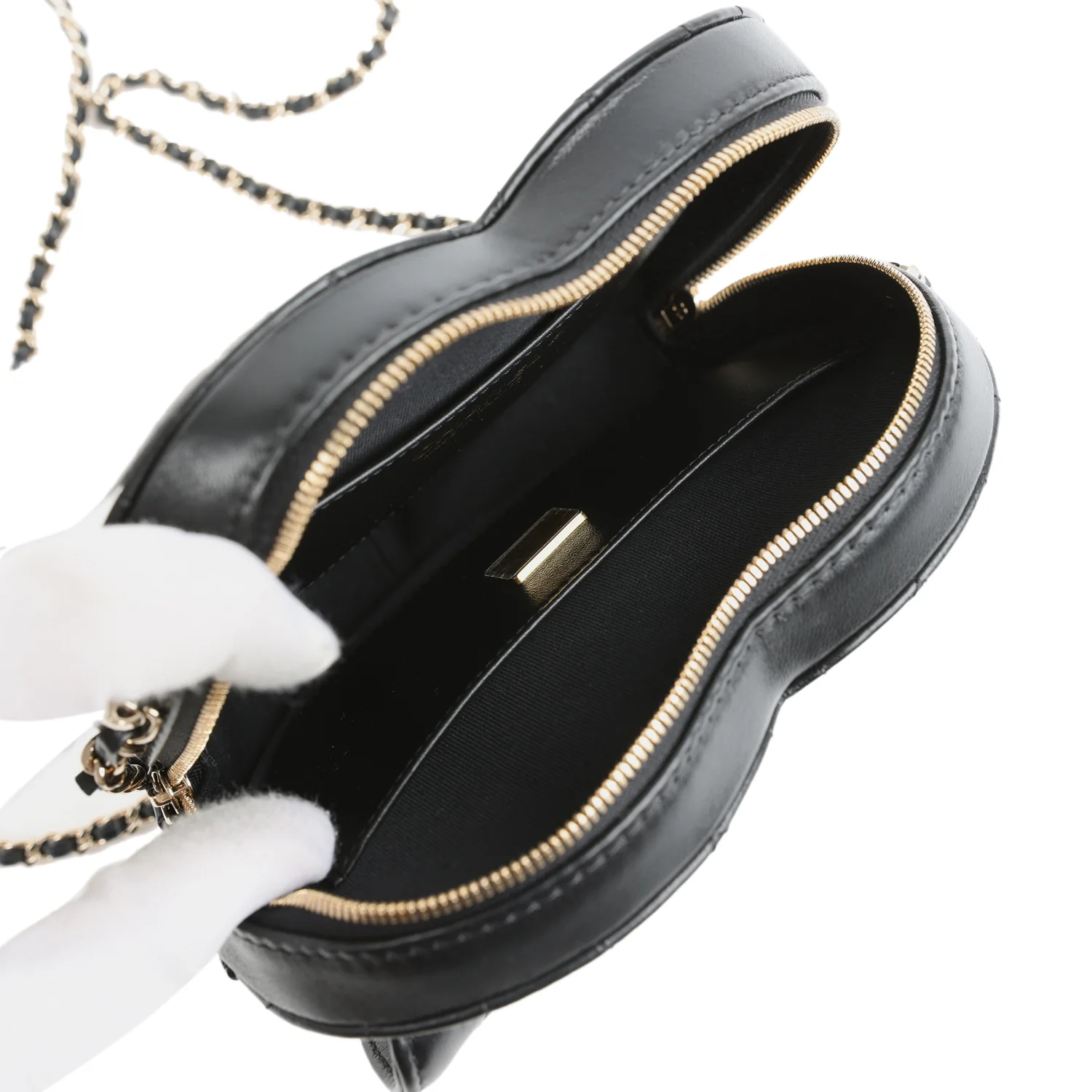 Chanel CC In Love Large Heart Bag with Chain Black Lambskin Light Gold Hardware