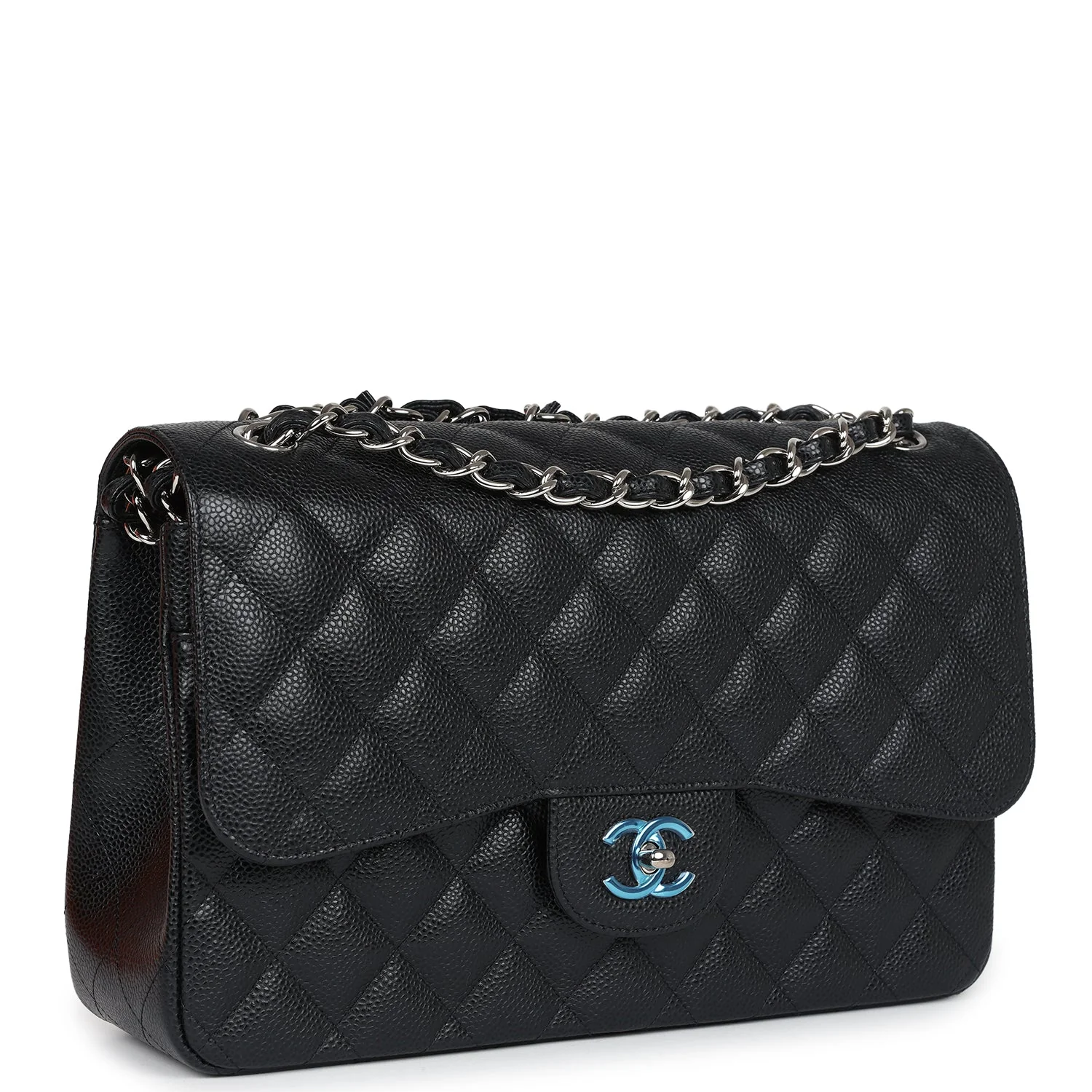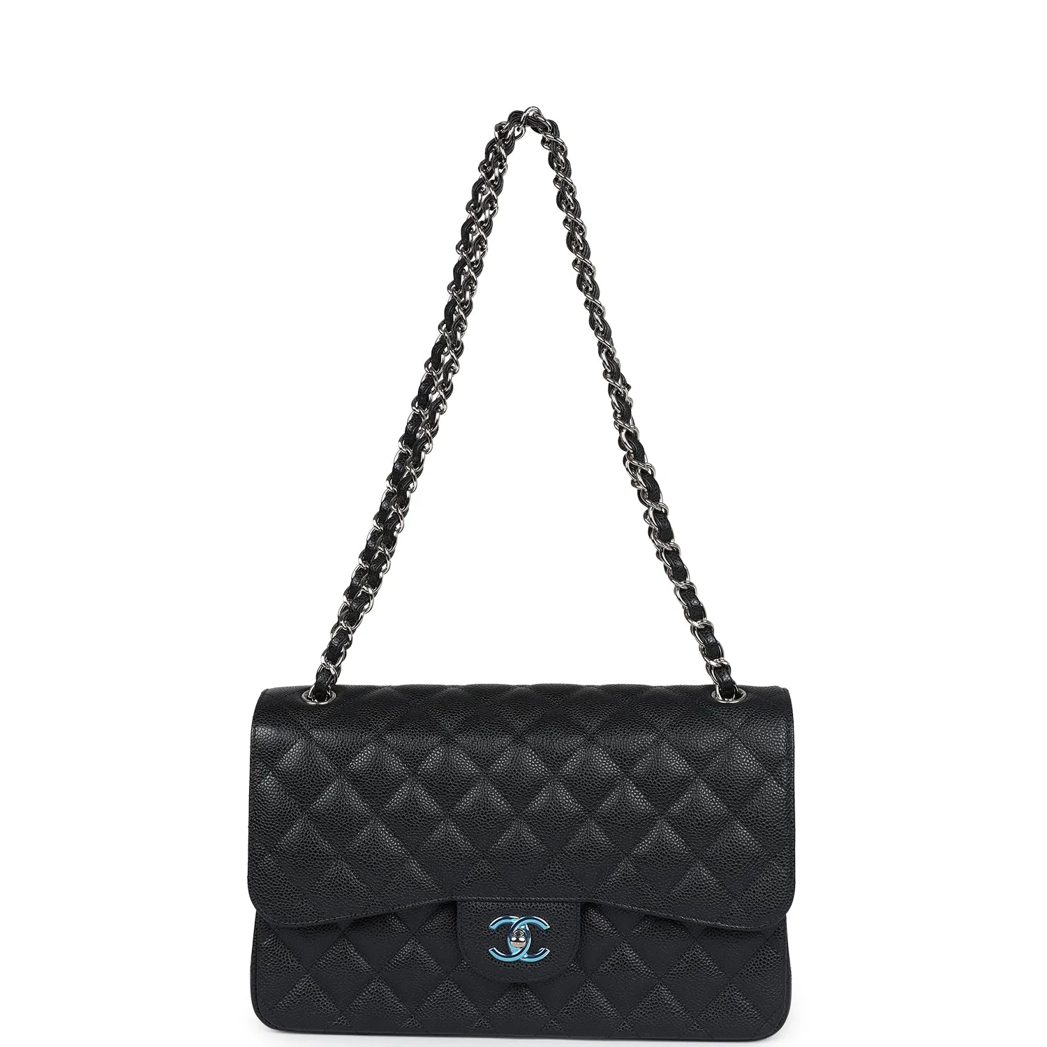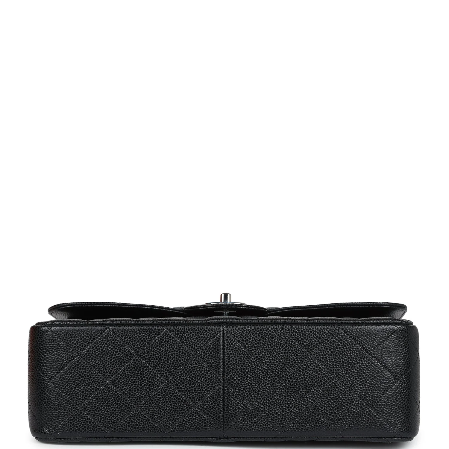 • Chanel Jumbo Classic Double Flap Bag Black Caviar Silver Hardware