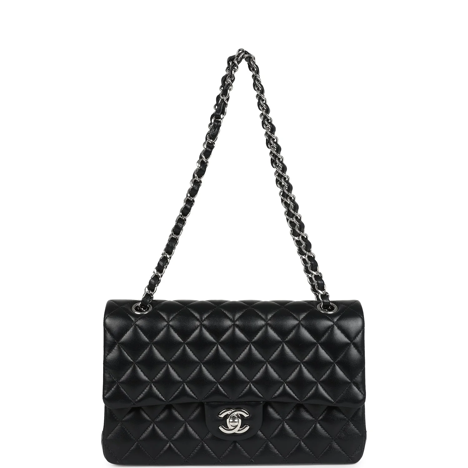 Chanel Medium Classic Double Flap Bag Black Lambskin Silver Hardware