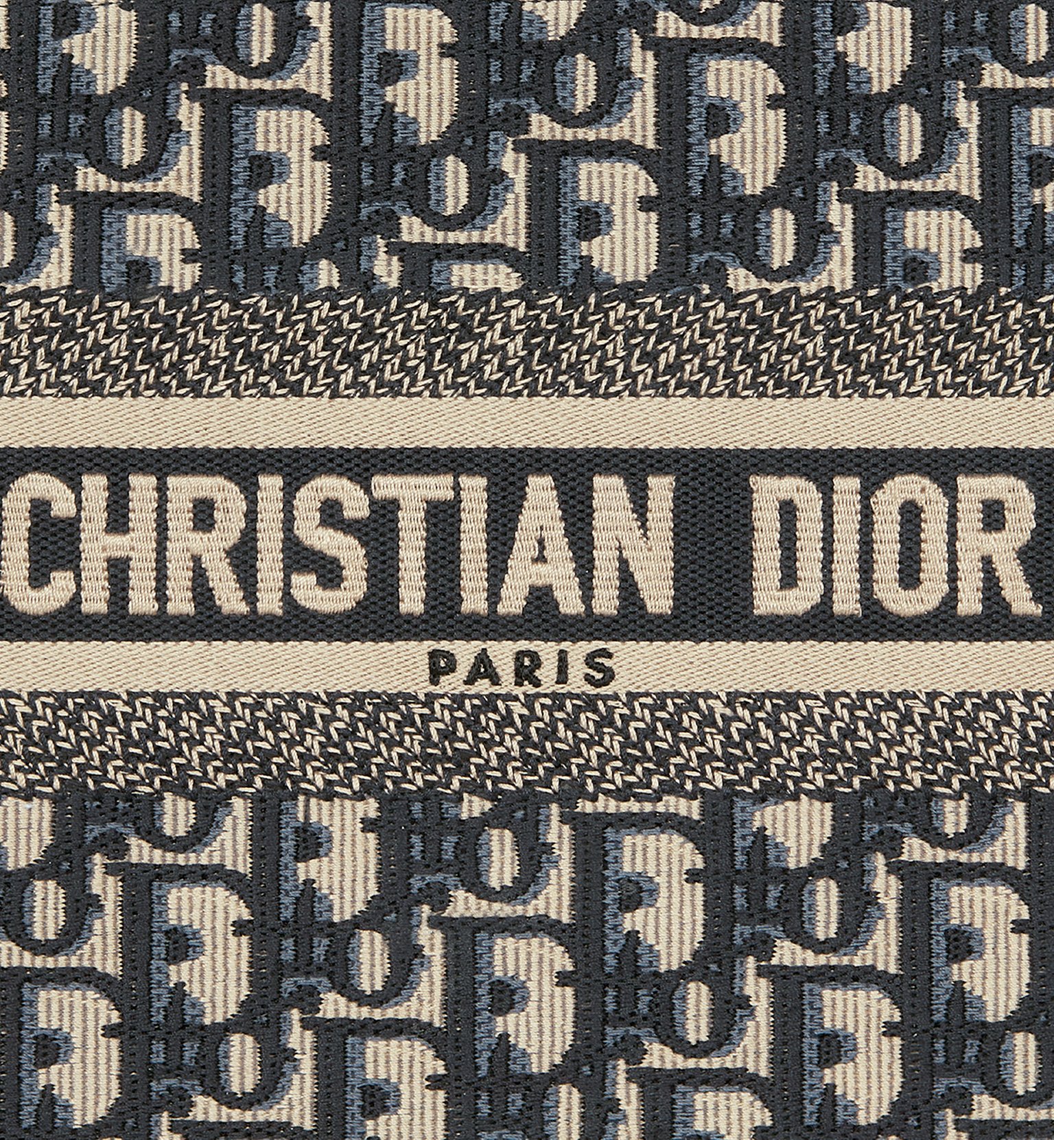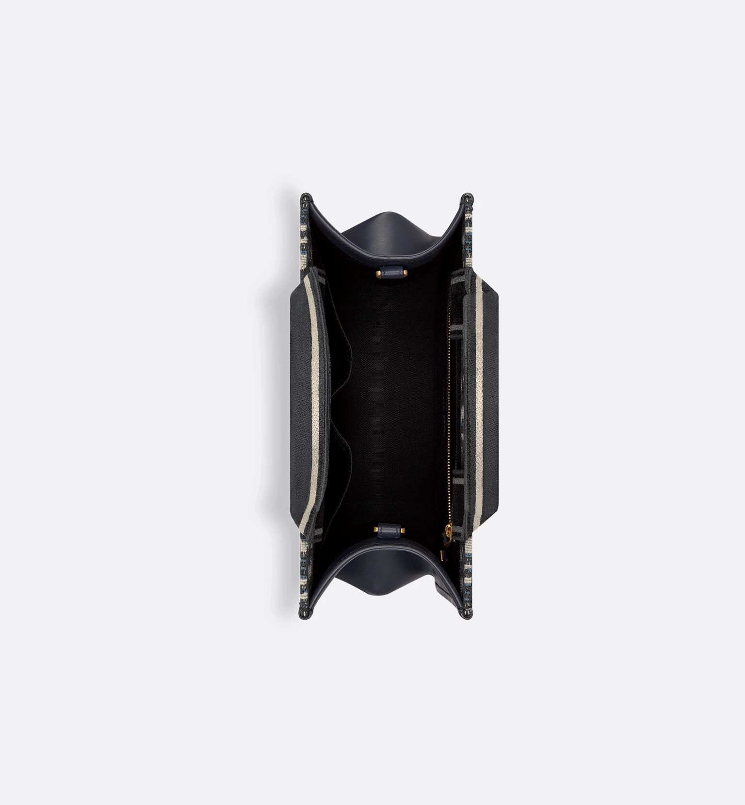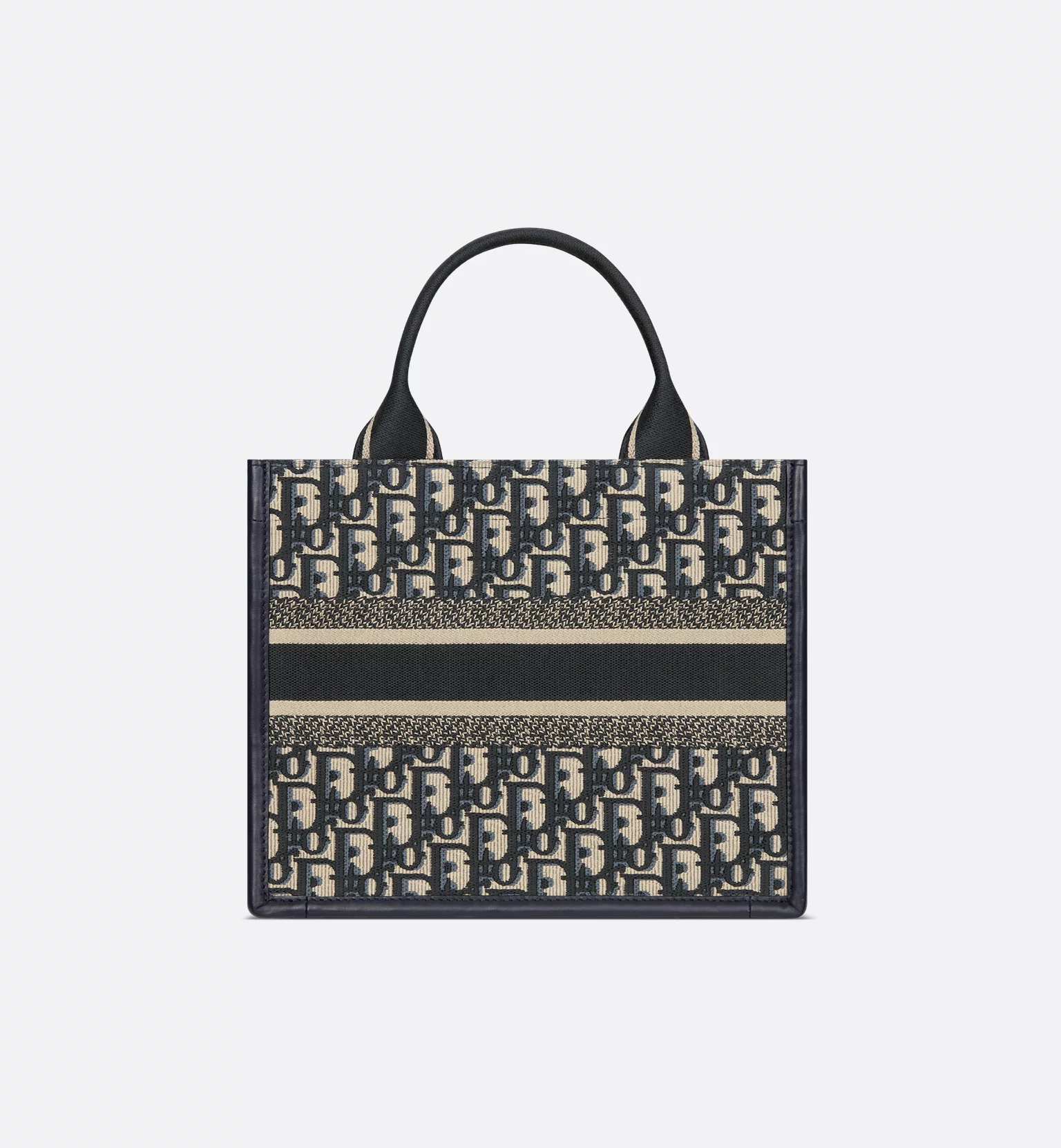 Small Dior Book Tote Blue Dior Oblique Embroidery and Calfskin (26.5 x 22 x 14 cm)