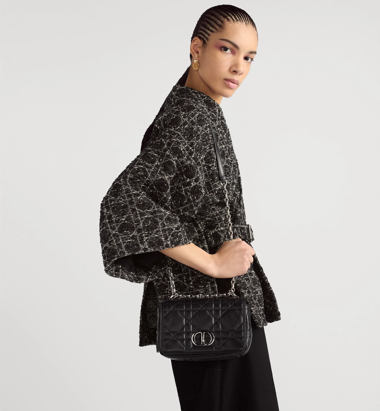 • Small Soft Dior Caro Bag Black Macrocannage Lambskin