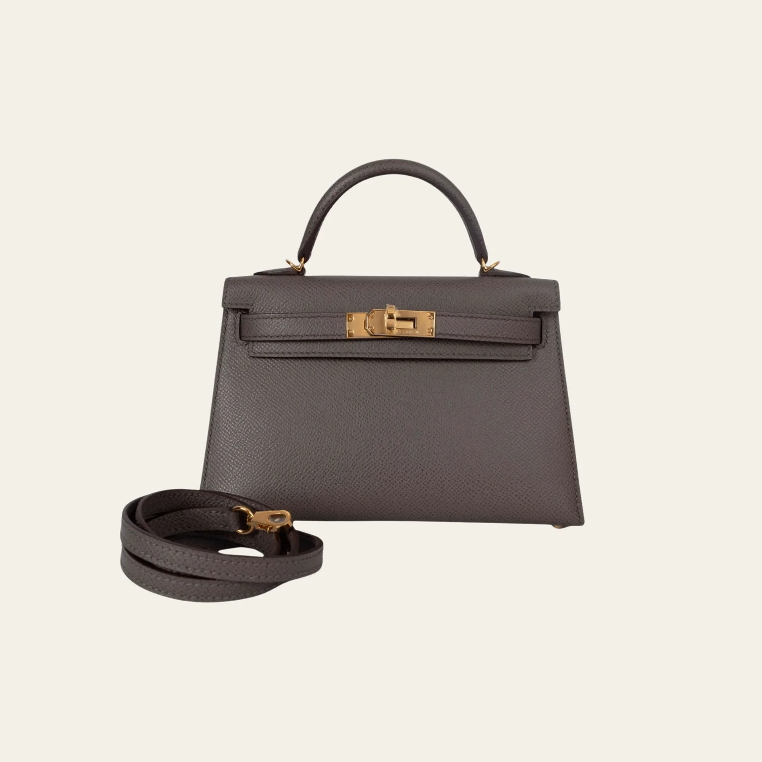 Hermès Gris Etain Mini Kelly Sellier 20 Epsom Gold Hardware