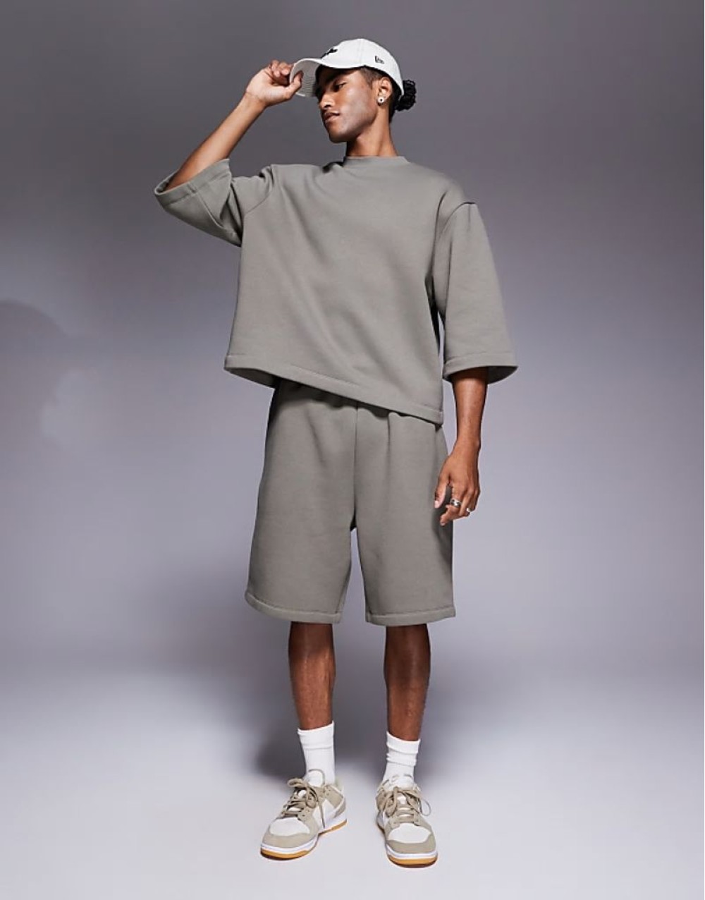 heavyweight scuba bermuda shorts in grey marl - GREY